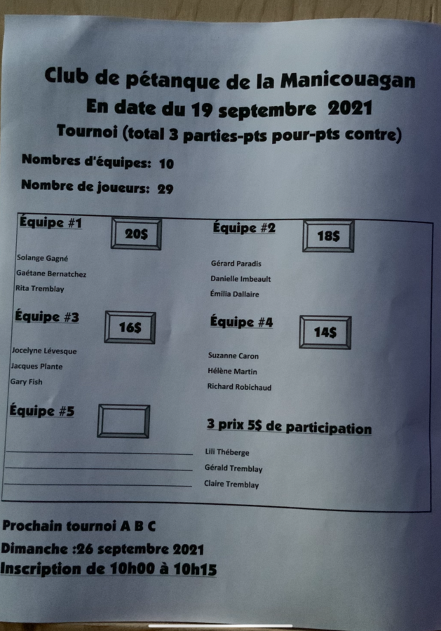 ADHÉSION POUR LE CLUB DE PÉTANQUE DE LA MANICOUAGAN ( 5,00$)