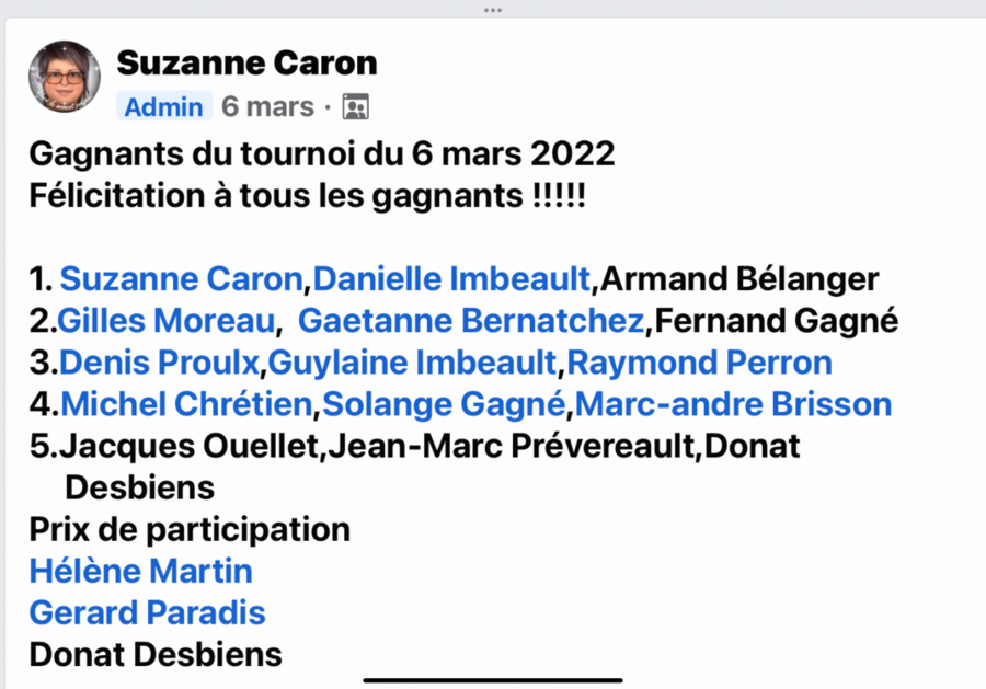 Tournois - Dimanche 6 mars 2022