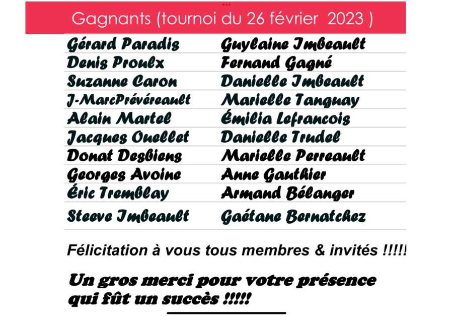 Activités spéciales - Dimanche 26 février 2023